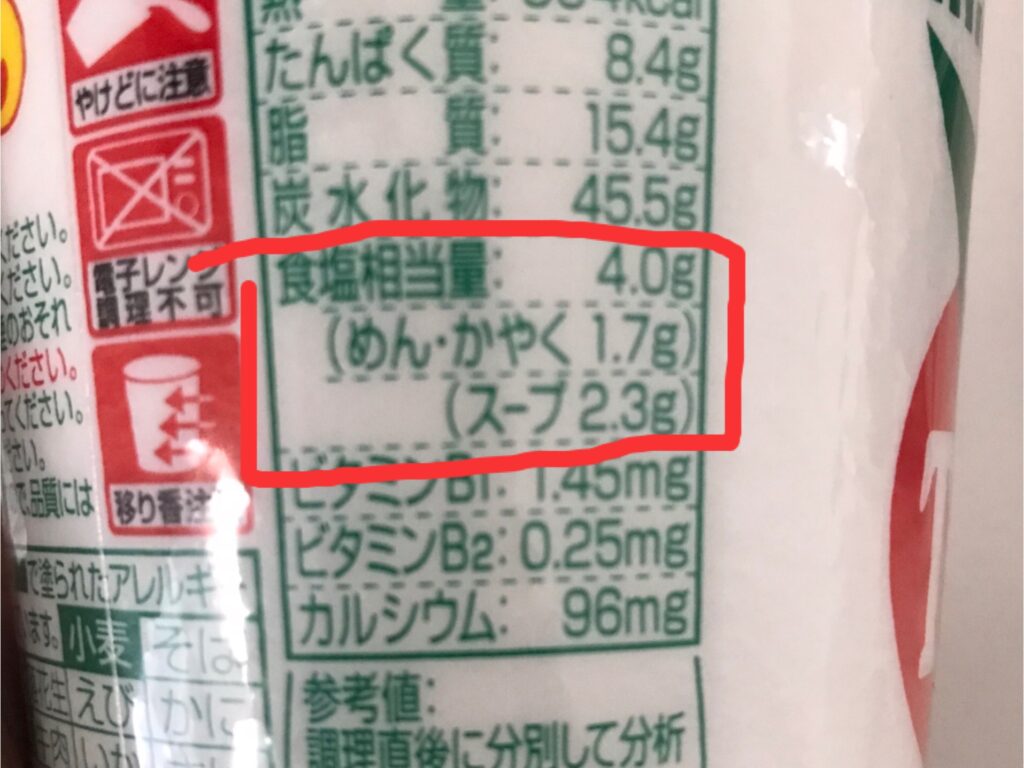 カップ麺の塩分は約半分がスープ由来のものですからそこを工夫することがポイントになります。