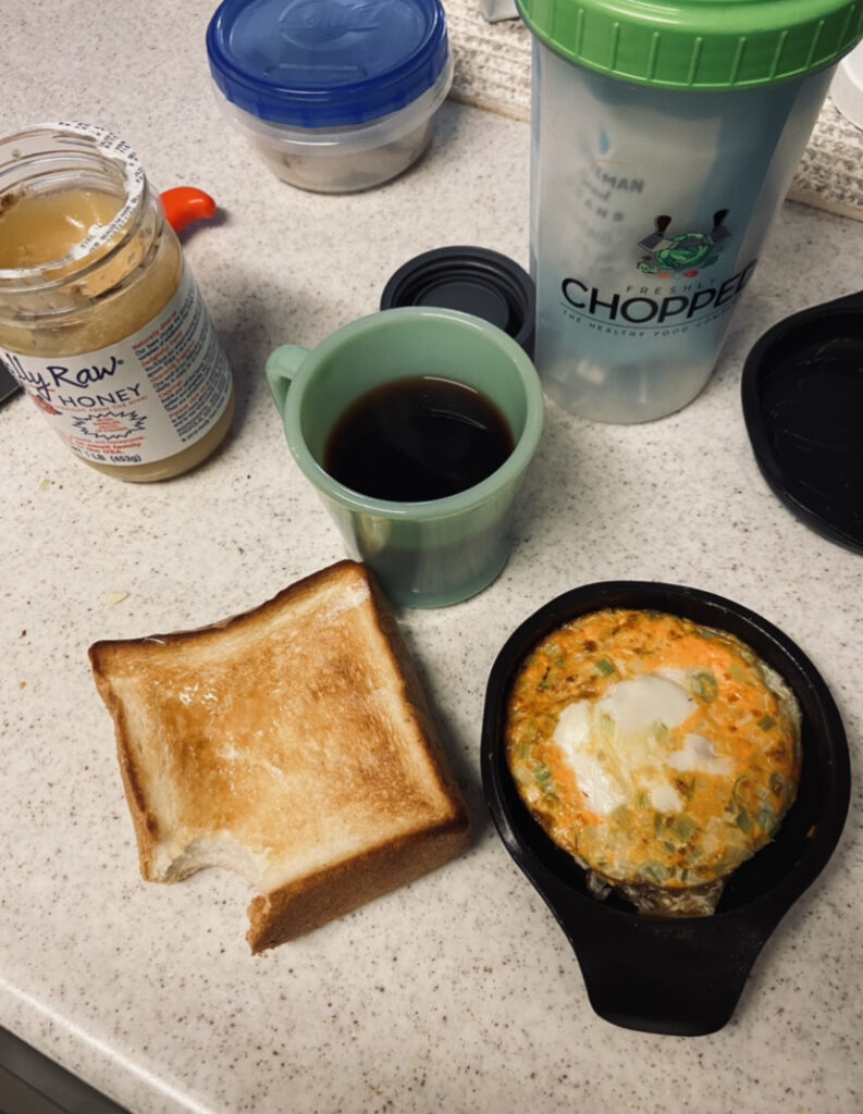意識したこと:朝は炭水化物(米)をしっかり食べる。炭水化物は白色より茶色いもの(白米<玄米)。発酵食品(納豆)を食べる。納豆に醤油はかけずキムチを少し入れて食べる(やや減塩)。
