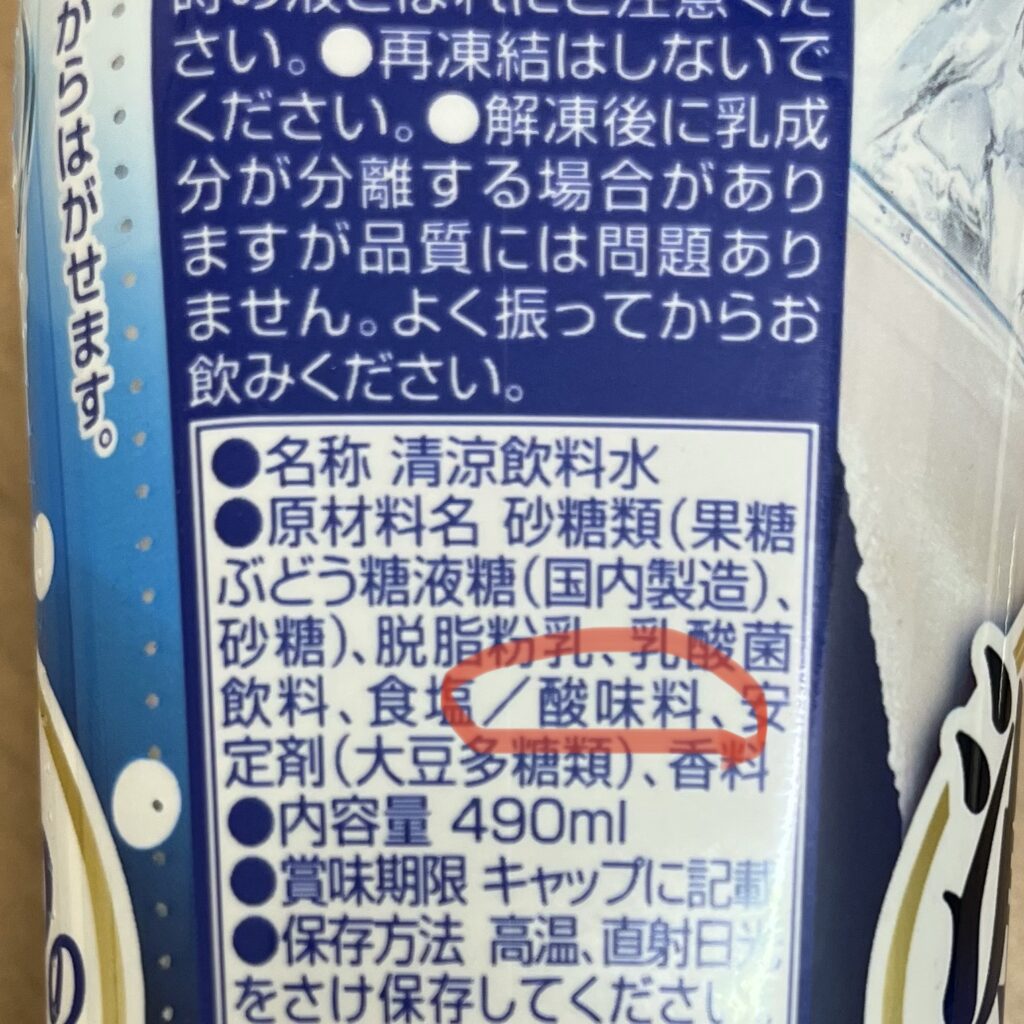 清涼飲料水の食品添加物の記載です。ぜひ一度ご自宅にある加工食品も確認してみてください。