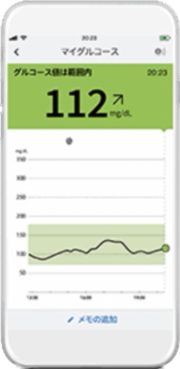 グルコース値と、その経過がグラフになって表示されます。